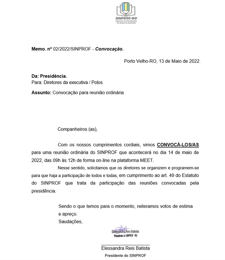 O SINPROF , convoca os diretores da Executiva e Polo para uma Reunião Ordinária dia 14 de Maio de 2022, das 09H00 as 12H00, Vejam o Edital Deixe um comentário / Geral / Por Jacson Compartilhe essa matéria Compartilhe essa matéria